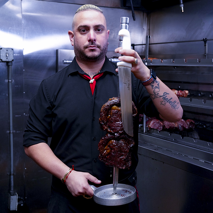 En nuestro restaurante de carnes, te ofrecemos un servicio de rodizio único, con más de 17 cortes premium traídos a tu mesa uno a uno. All you can eat buffet con salad bar incluido Postres y bebidas